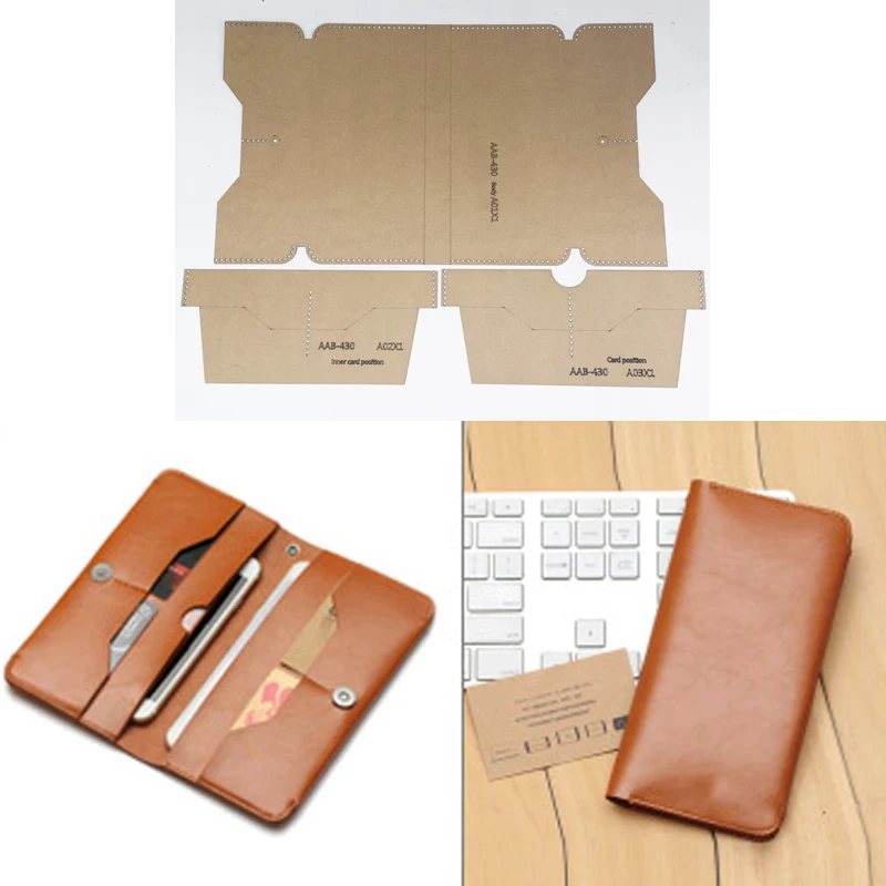 Diy Leather Sewing Pattern Kraft Paper Template Magnetic Snap Bifold Long Wallet Business Card Holder Men English Version Aliexpress Home Garden